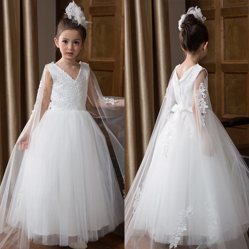 Flower Girl Dress Children Princess Dress White Wedding Dress Girl Pompon Yarn Host Catwalk Stage Piano Talent Costumes For Girls Long Sleeved Lace Dress Wedding Toast Graduation Pictures Shopee Singapore Wedding Dress Childrens Costumes
