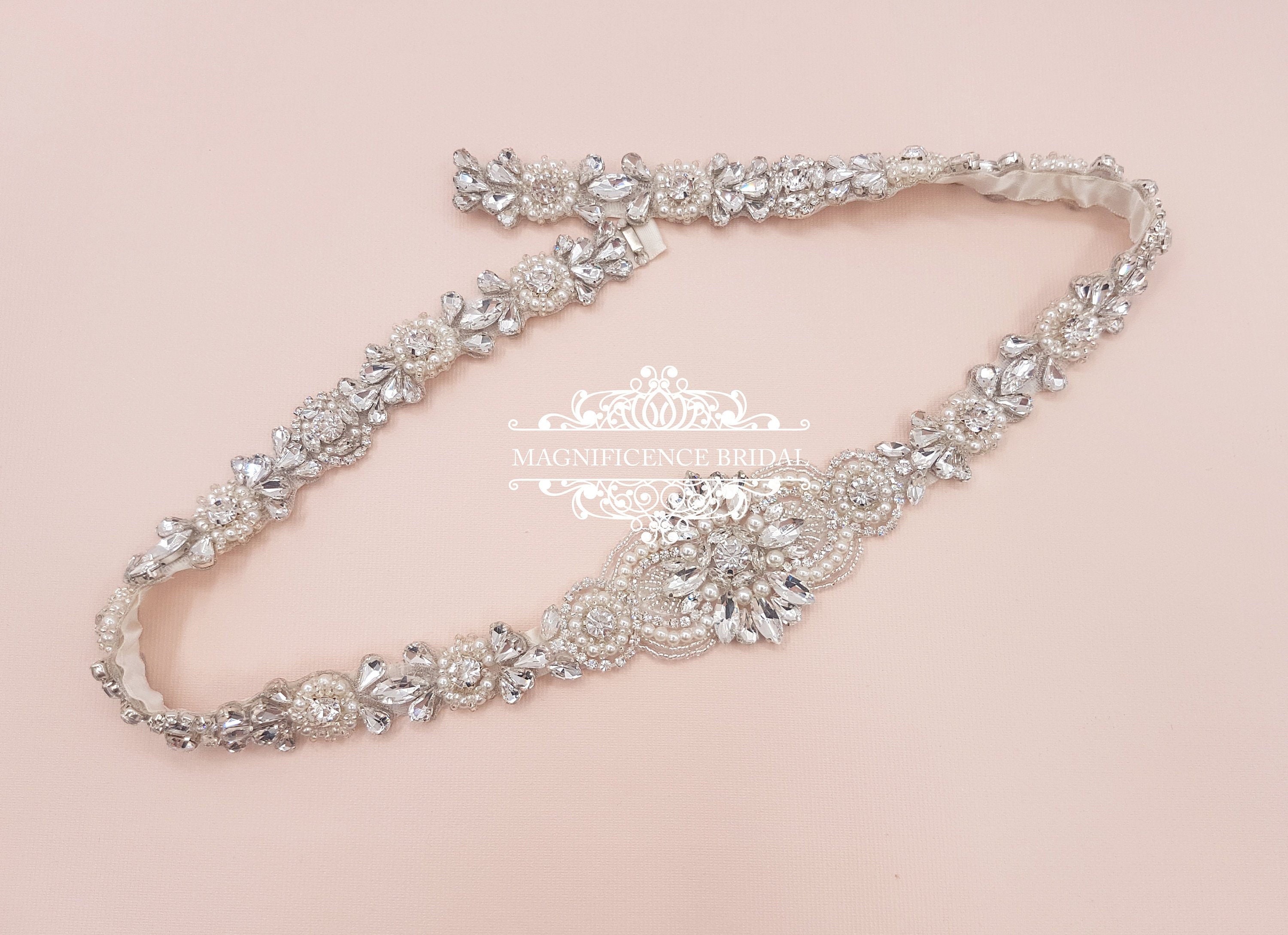 Pbb1012 Diamante Pearl Seed Bead Bridal Belt On Ribbon Sash Wedding Dress Diamante Belt