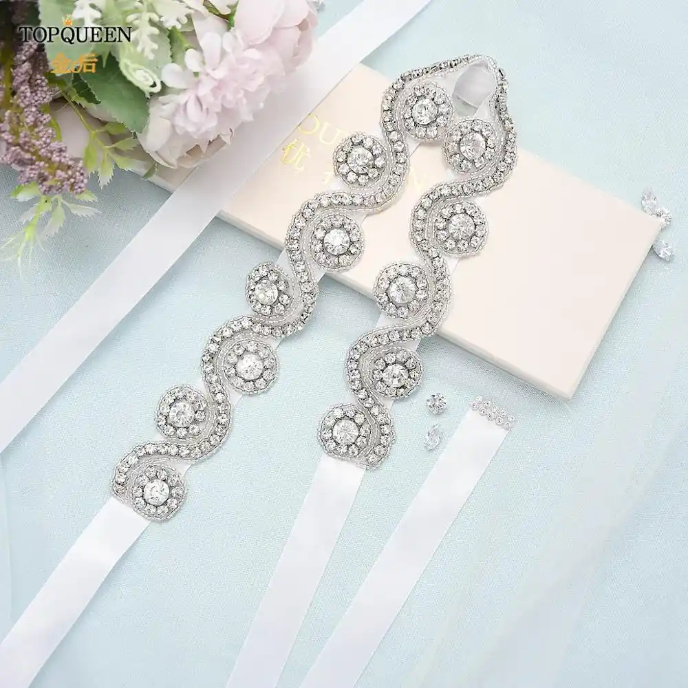 Topqueen S10 Luxury Bridal Belts Silver Diamond Belt Wedding Wedding Dress Diamond Belt