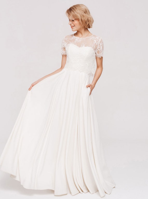 Alana Wedding Gown Dress Fitted Bodice And Skirt With Pockets Etsy Wedding Dress Fitted Bodice Full Skirt