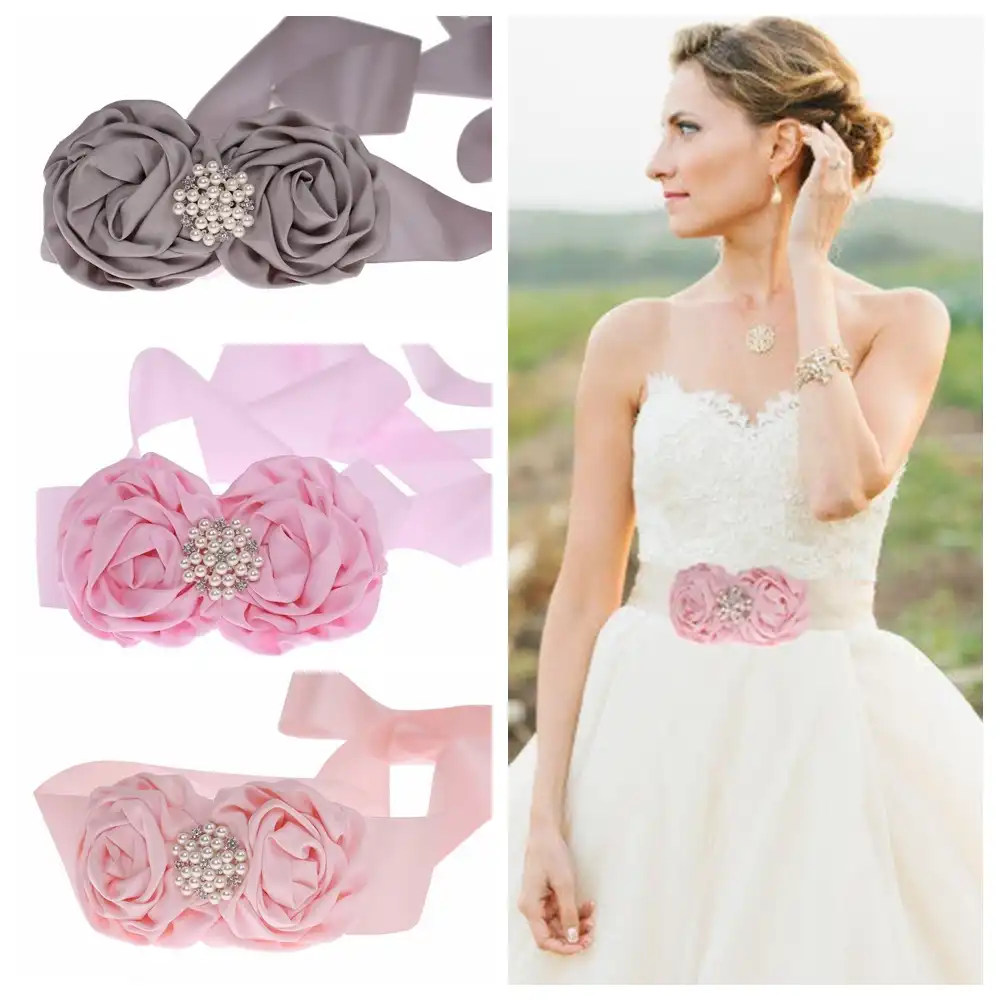 Sash Bridal Wedding Dress Sash Belt Ivory Flower Rhinestone Sash Wedding Dress Flower Sash