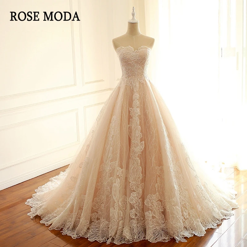 Rose Moda Luxury Blush Pink Wedding Dress French Lace Wedding Wedding Dress French Lace