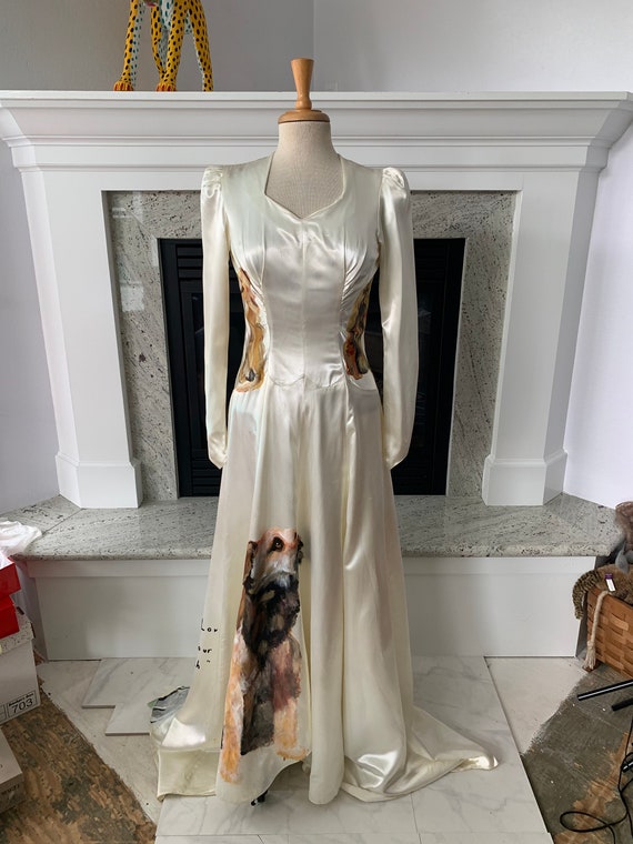 Upcycled Dog Lover Painted Vintage 40 S Liquid Satin Etsy Wedding Dress In Your 40s