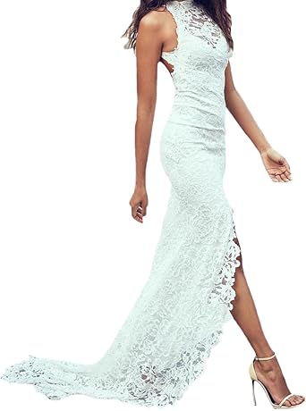 Vinbridal 2019 Sexy Halter Backless Lace High Slit Bridal Gown Wedding Dresses At Amazon Women S Clothing Store Wedding Dress Lace Backless