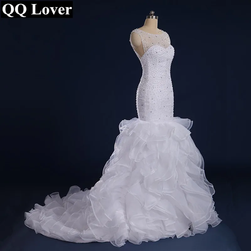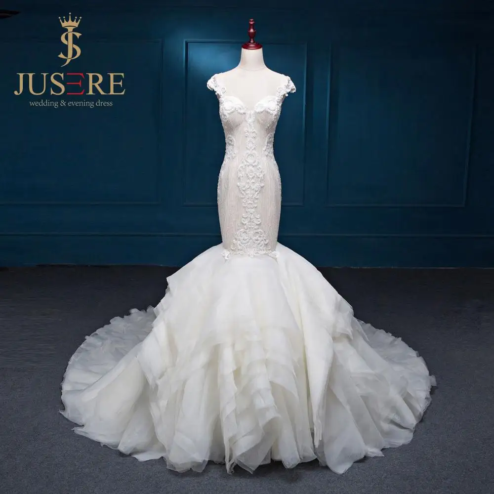 Luxury Sweetheart Neck With Cap Sleeves Heavy Hand Beaded Mermaid Wedding Dress Mermaid Ruffles