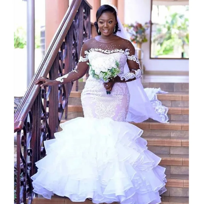 Luxury Backless Unique Vintage Wedding Dresses With Cascading Wedding Dress Mermaid Ruffles