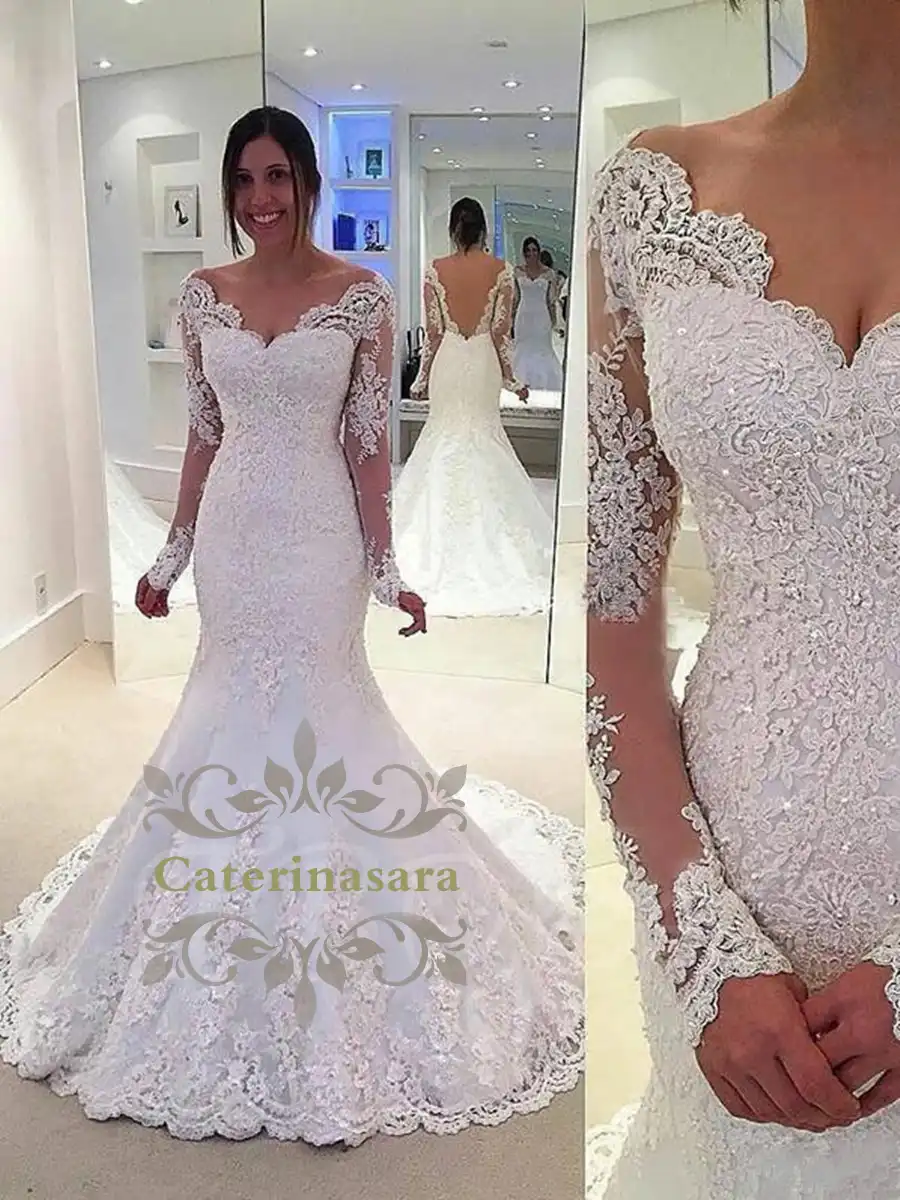 Elegant Mermaid Lace Wedding Dress Sexy Spaghetti Straps Wedding Dress Mermaid With Train