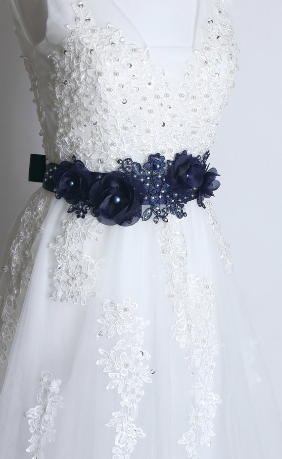 Dark Blue Wedding Sash Belt Swarovski Pearl Blue Belt Navy Etsy Wedding Dress Navy Sash