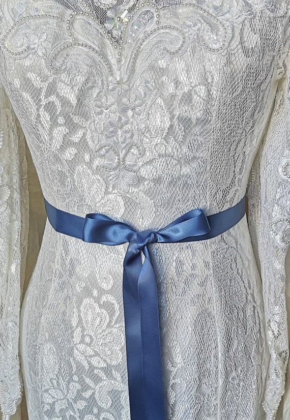Blue Sash Navy Wedding Bridal Dress Belt Gown Waist Thin Satin Etsy Wedding Dress Navy Sash