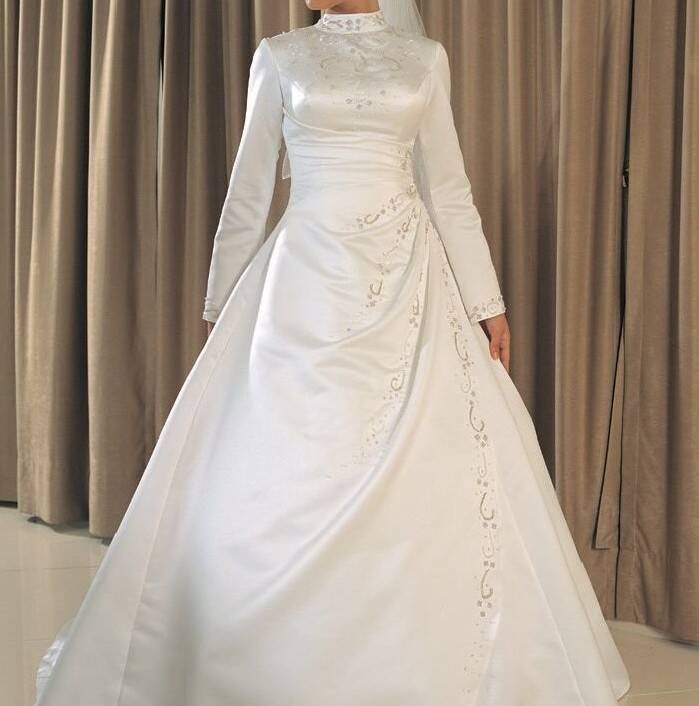China Women S White Satin Long Sleeve Wedding Dresses Muslim Wedding Dress Of Muslim Bride