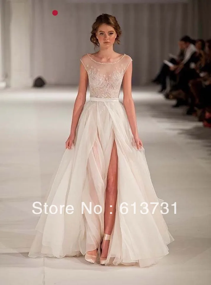 2014 New Arrival Elie Saab Wedding Dresses Scoop Neck Cap Sleeves Wedding Dress Of The Year 2014