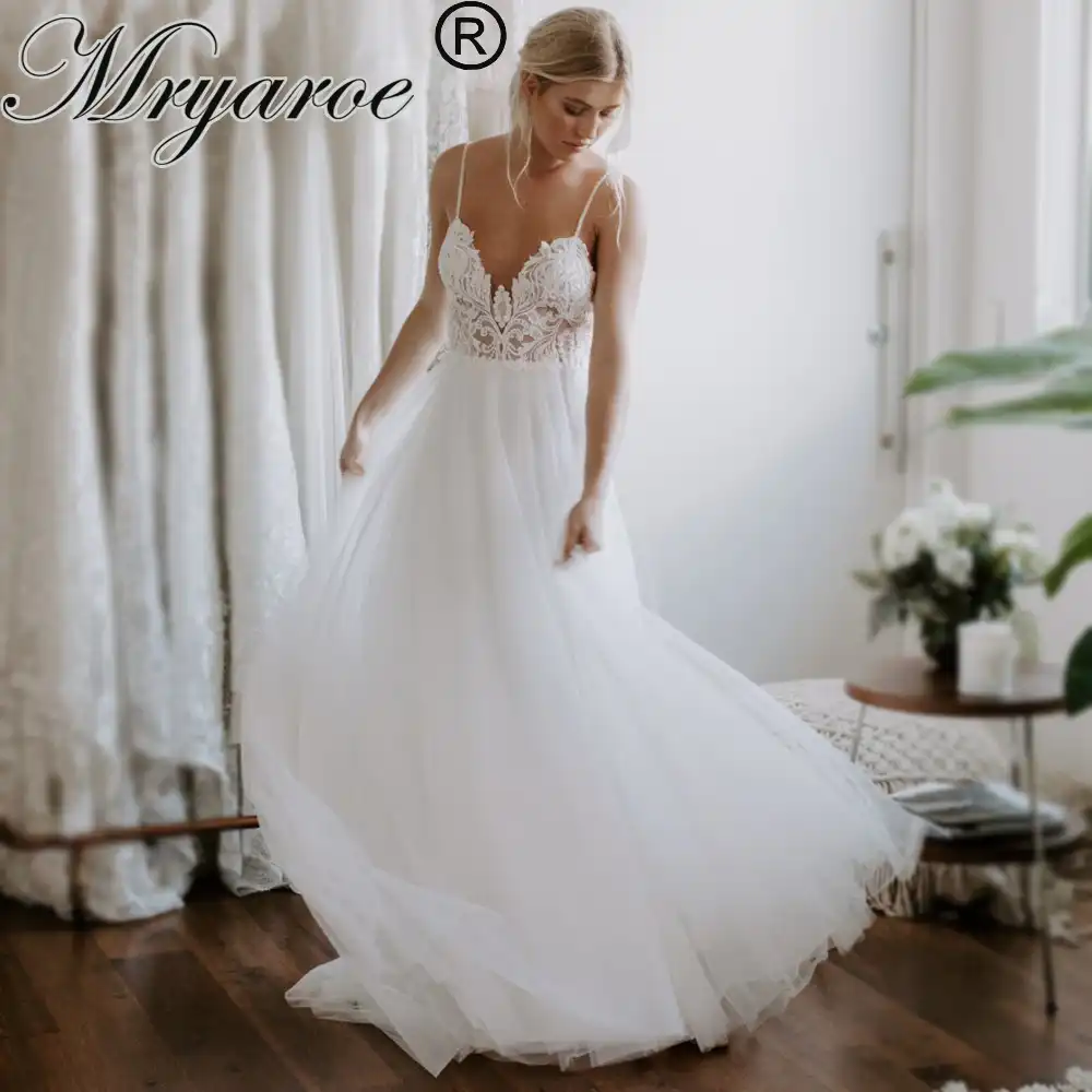 Andybridal Women S Noble Open Back Slit Boho Summer Bridal Gowns Wedding Dress Open Back Lace