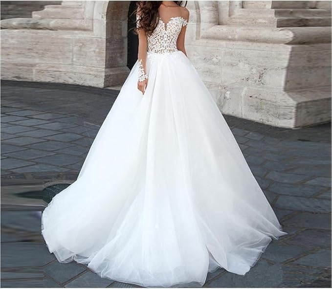 Irenwedding Women S Sweetheart Long Sleeve Lace Applique Open Back Wedding Dress Open Back Lace