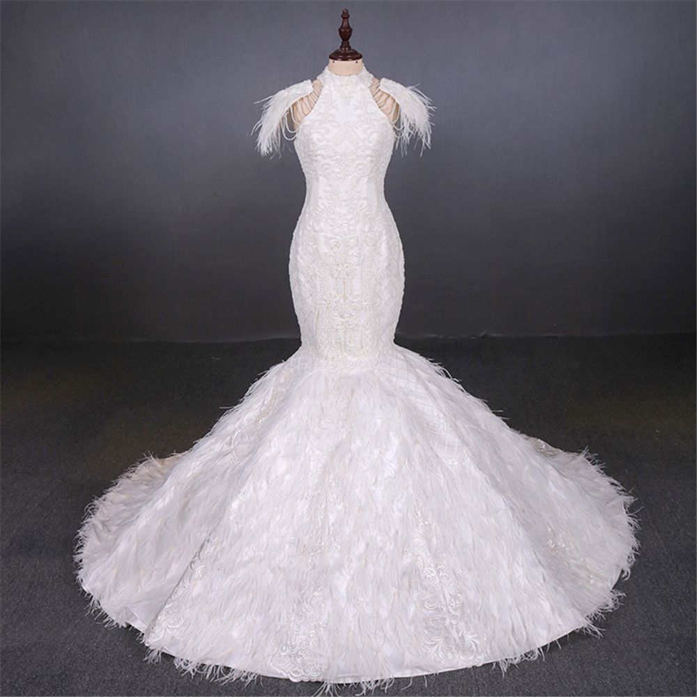 Newest Luxury Ostrich Feather Mermaid Wedding Dresses High Wedding Dress Ostrich Feathers
