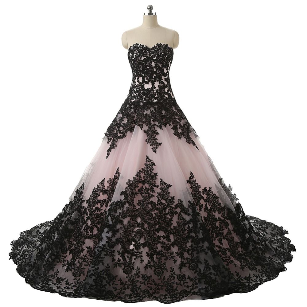 Discount Blushing Pink Black Gothic Ball Gown Wedding Dresses Sweetheart Lace Appliques Vintage Bridal Gowns Non White Wedding Gowns Colorful One Shoulder Wedding Dress Online Wedding Dresses From Totallymodest 114 07 Dhgate Com Wedding Dress Pink And Black