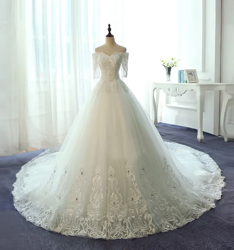 Custom Made Cap Three Quarter Sleeves Ruffled Skirt Gorgeous Ball Wedding Dress Ruffle Skirt