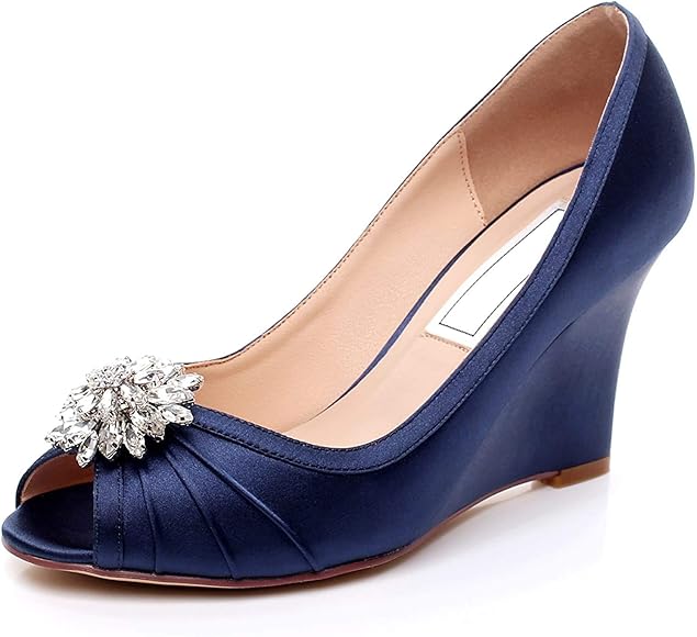 Yooziri Dark Blue Wedding Shoes Wedges With Lace Ivory Bridal Wedding Dress Shoes Wedges