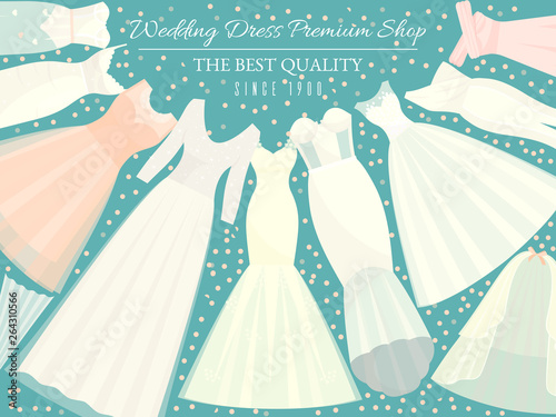 Different Styles Of Wedding Dresses Banner Vector Illustration Wedding Dress Shopping Invitation