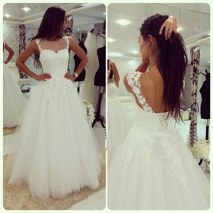 Hot Sale Outstanding Wedding Dresses Lace Spaghetti Straps Chapel Wedding Dress Straps For Sale