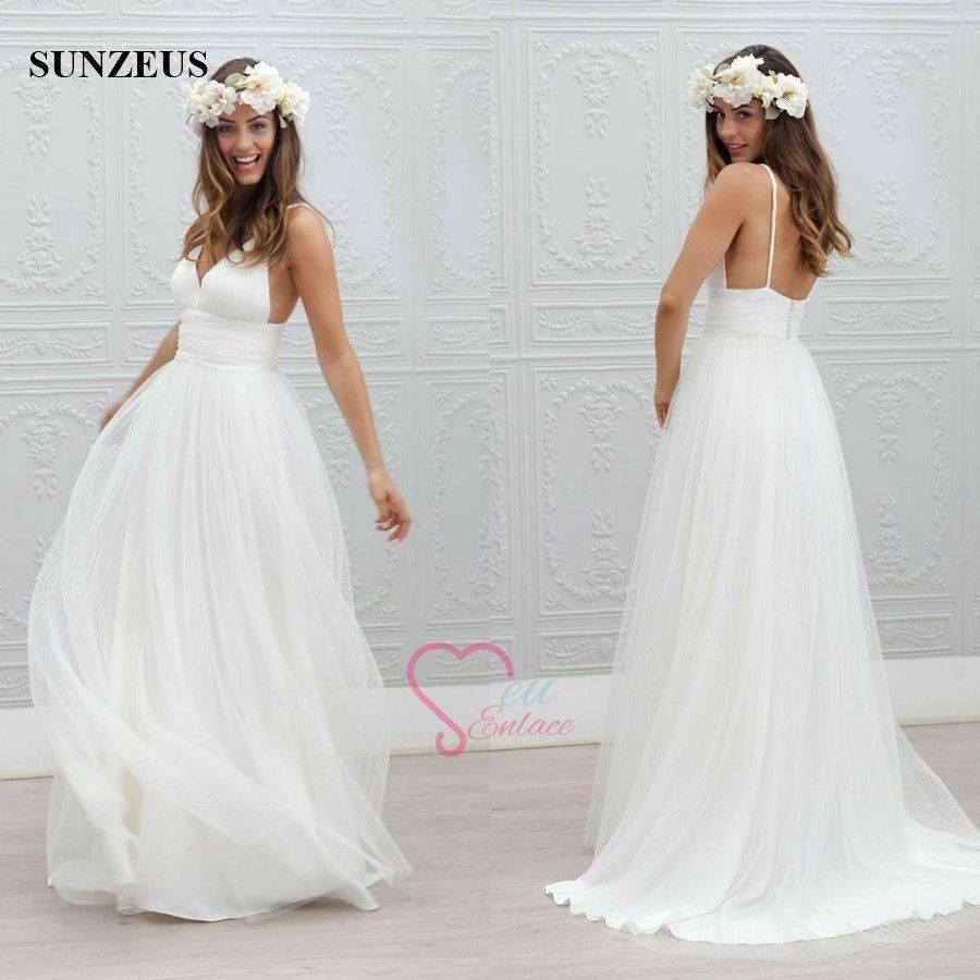 Discount A Line Spaghetti Straps Low Back Bride Dress Simple Ivory Wedding Dress Straps Low Back