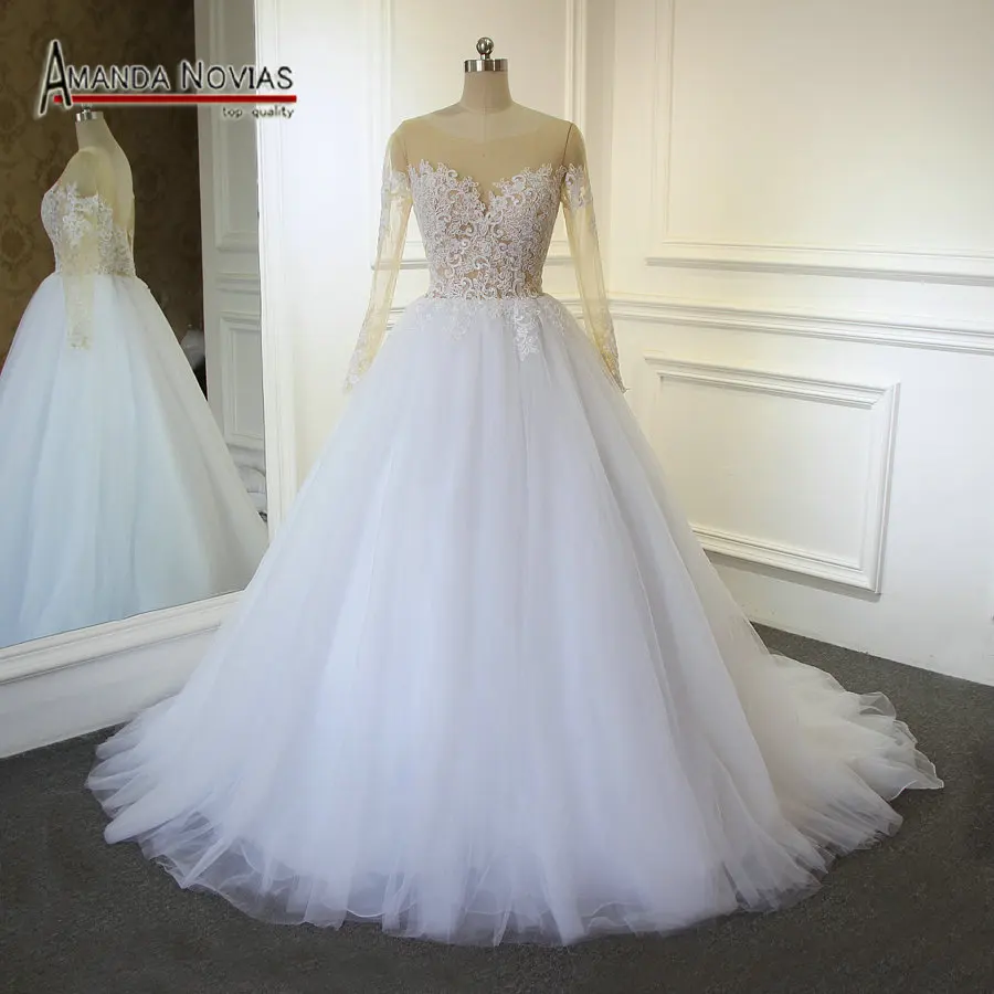 Alanre A Line Scallop Neck Lace Transparent Back Princess Wedding Wedding Dress Transparent