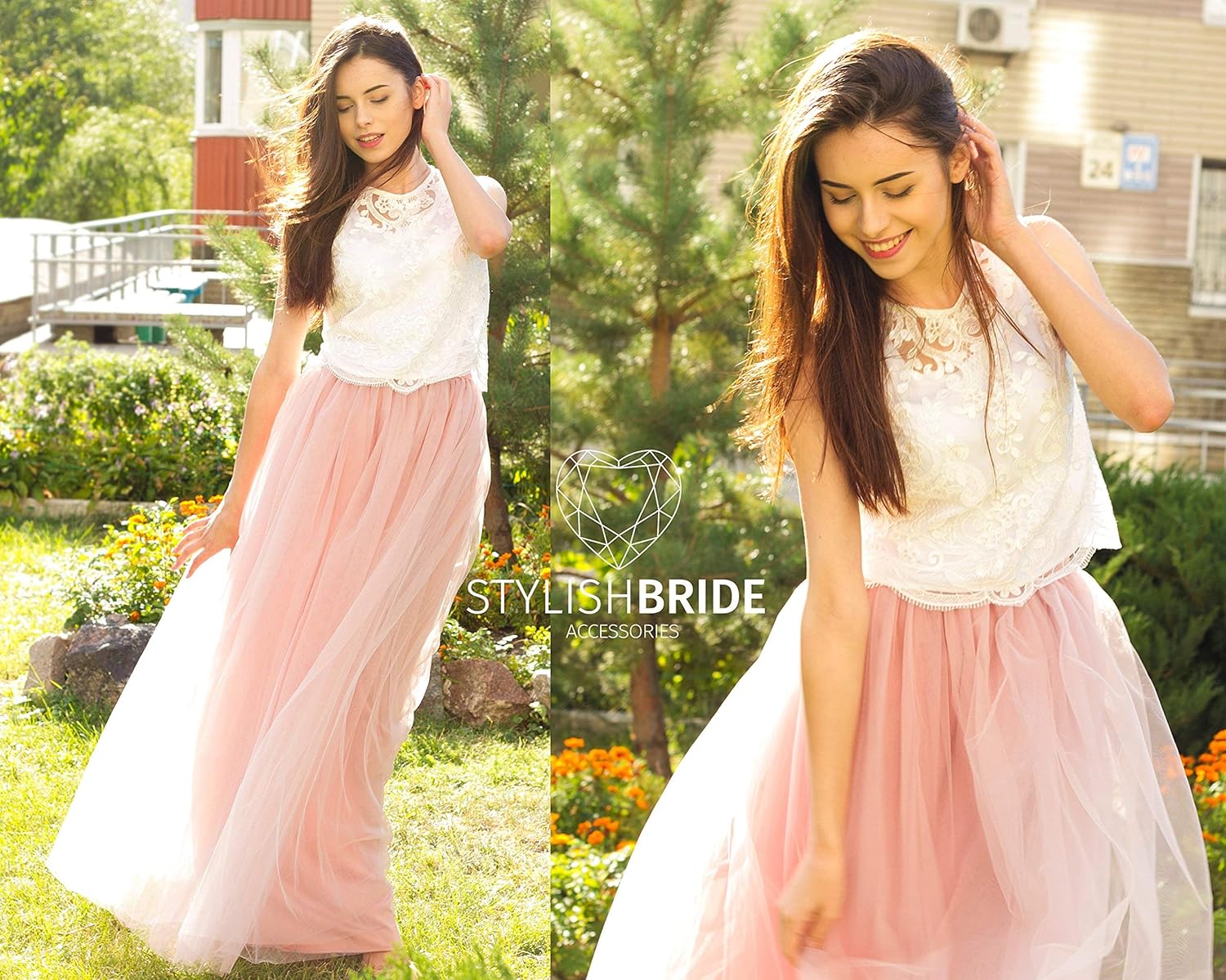 Amazon Com Freesia Dress Tulle Set Lace Crop Top And Tulle Skirt Long Lace Crop Top Bridesmaids Dress Cami Crop Top Tulle Blush Pink Blue Grey Skirt Handmade Wedding Dress Tulle Skirt Lace Top