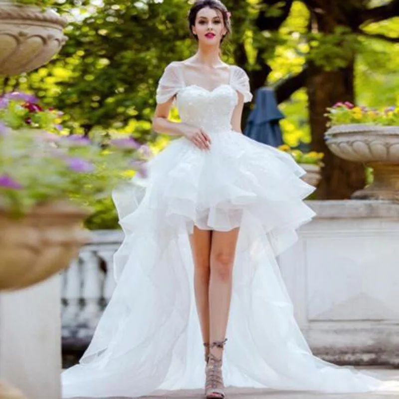 U Swear 2020 New White Ivory Tulle Hi Lo A Line Wedding Dress Lace Wedding Dress U