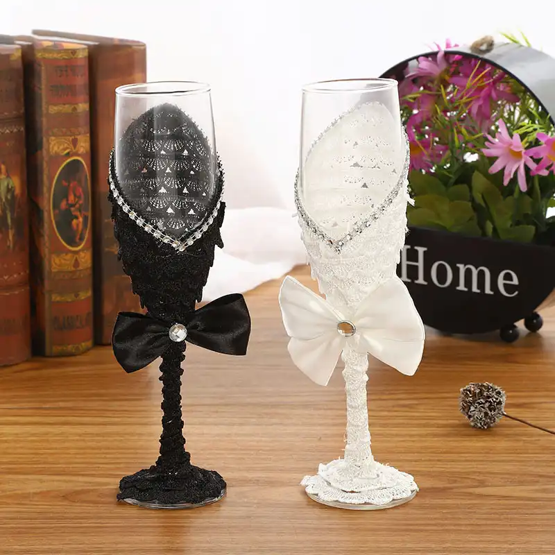 2pcs Set Wedding Glass Creative Black White Dress Crystal Wedding Wedding Dress Wine Glass