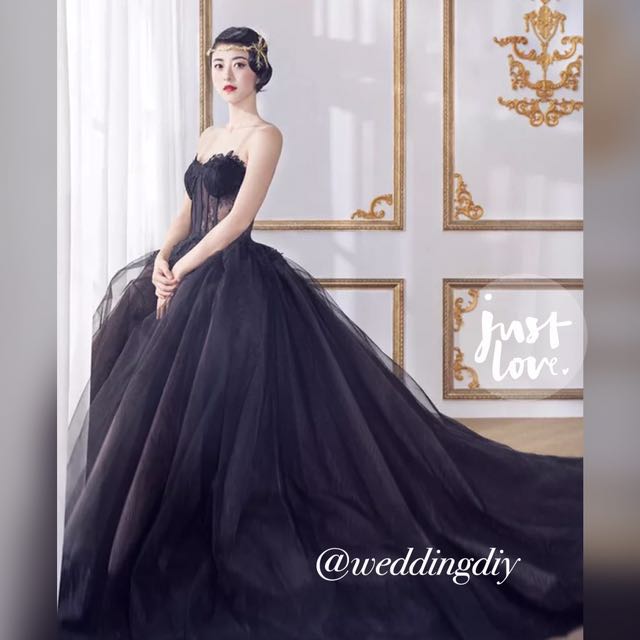 Instock Wedding Gown Black Sexy Gown With Train Theme Photoshoot Wedding Dress With Black Train