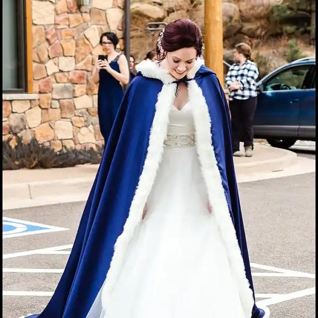 Fur Trim Satin Wedding Cloak Bridal Cape Women S Coat Shawl Wrap Wedding Dress With Blue Trim