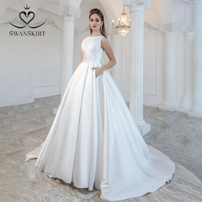 Elegant Satin Wedding Dress 2020 Swanskirt Bow Back Ball Gown Court Train Bride Gown Princess Customized Vestido De Noiva M105 Wedding Dresses Aliexpress Wedding Dress With Bow On Back