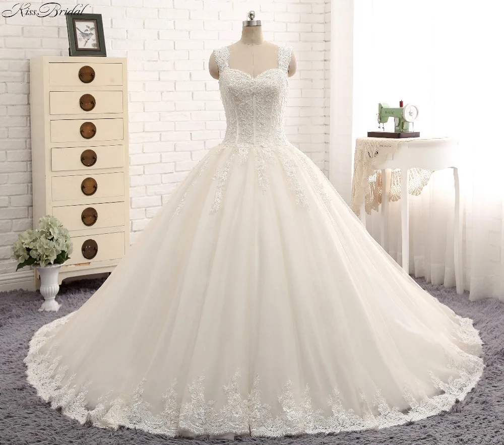 New Arrival Amazing Long Wedding Dress 2018 Sweetheart Neck Cap Wedding Dress With Cap Sleeves Sweetheart