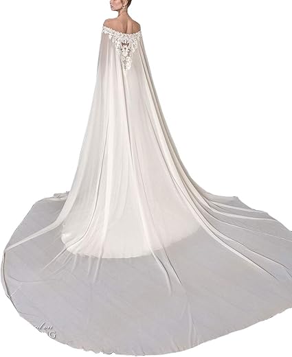 Kelaixiang Women S Chiffon Wedding Capes Lace Cathedral Length Wedding Dress With Cathedral Length Train
