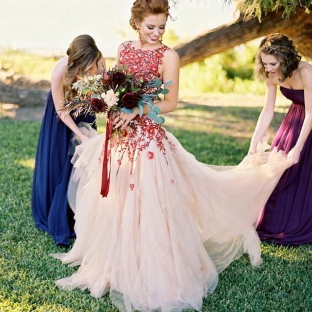 25 Non Traditional Bridal Looks That Inspire Weddingomania Wedding Dress With Embroidered Flowers