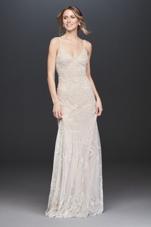 Anna All Over Lace Sleeveless V Neck Fit And Flare Wedding Dress Wedding Dress With Flowers All Over