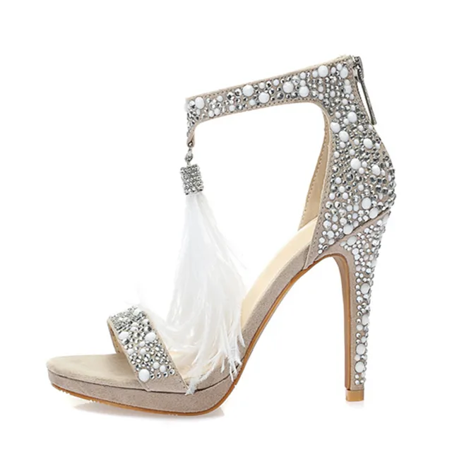 Full Rhinestone Women Gladiator Sandals Fringed High Heels Ankle Strap Summer Sandal Female Wedding Dress Shoes High Heels Aliexpress Wedding Dress With Gladiator Sandals