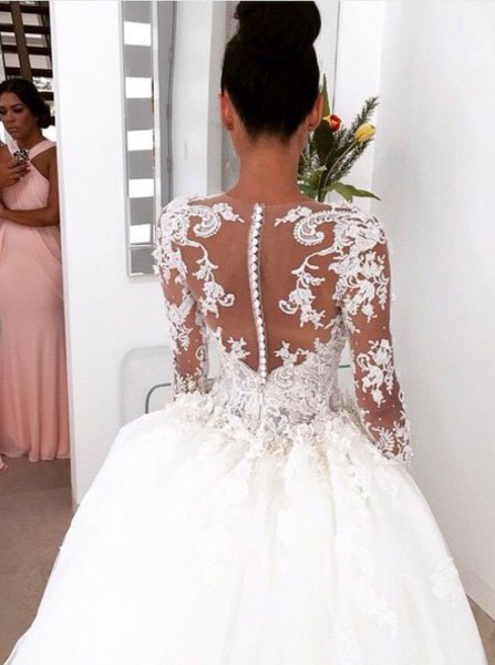 V Neckline Lace Embroidered A Line Wedding Dress With Illusion Wedding Dress With Illusion Sleeves