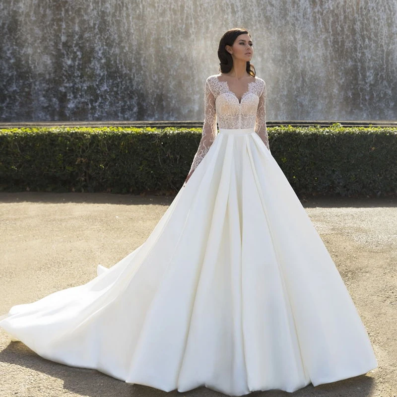 Best Offer 7b7c 2020 New Luxury Long Sleeve Ball Gown Wedding Wedding Dress With Illusion Top