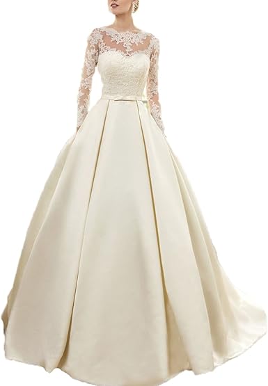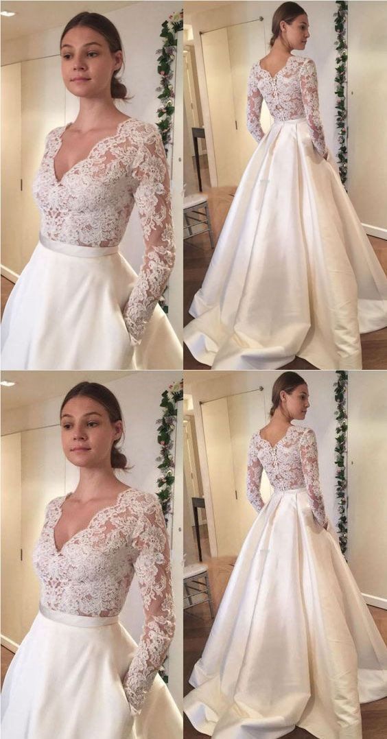 Relaxed A Line Satin Long Sleeved Wedding Dress With Pockets Wedding Dress With Long Sleeves And Pockets