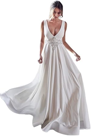 Loveonly Women S Deep V Neckline Low Cut Back Chiffon With Beadings Simple Beach Wedding Dress For Bride At Amazon Wedding Dress With Low Cut Back