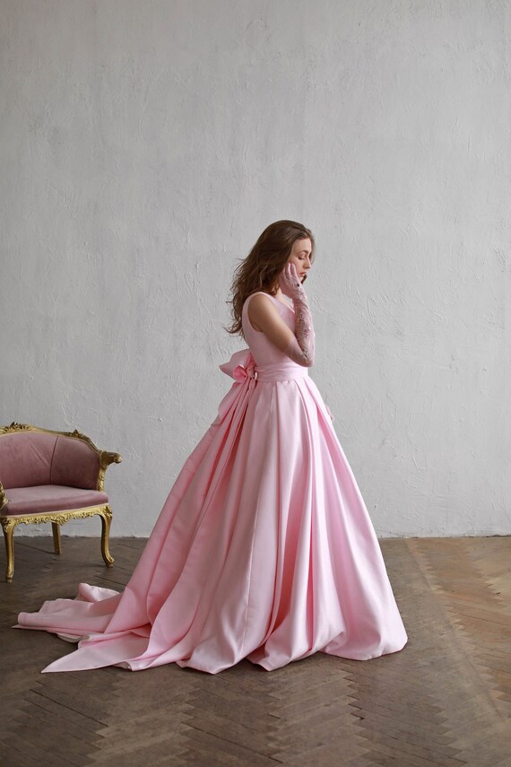 Pink Blush Dress Pink Bridesmaid Dress Wedding Prom Dress Cocktail Wedding Dress With Pink Bow