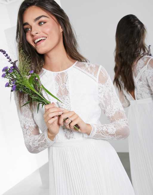 Asos Edition Iris Long Sleeve Lace Bodice Maxi Wedding Dress With Pleated Skirt Asos Wedding Dress With Pleated Skirt