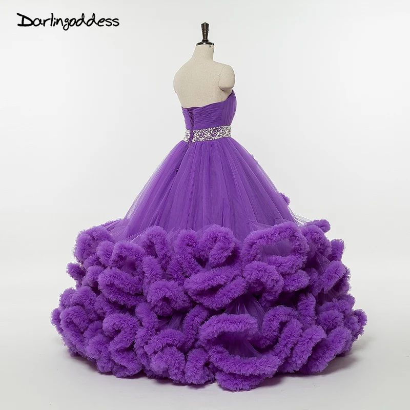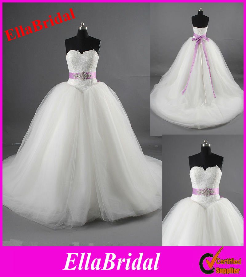 Real Photo Elegant Ball Gown Tulle Bridal Wedding Dresses With Wedding Dress With Purple Sash