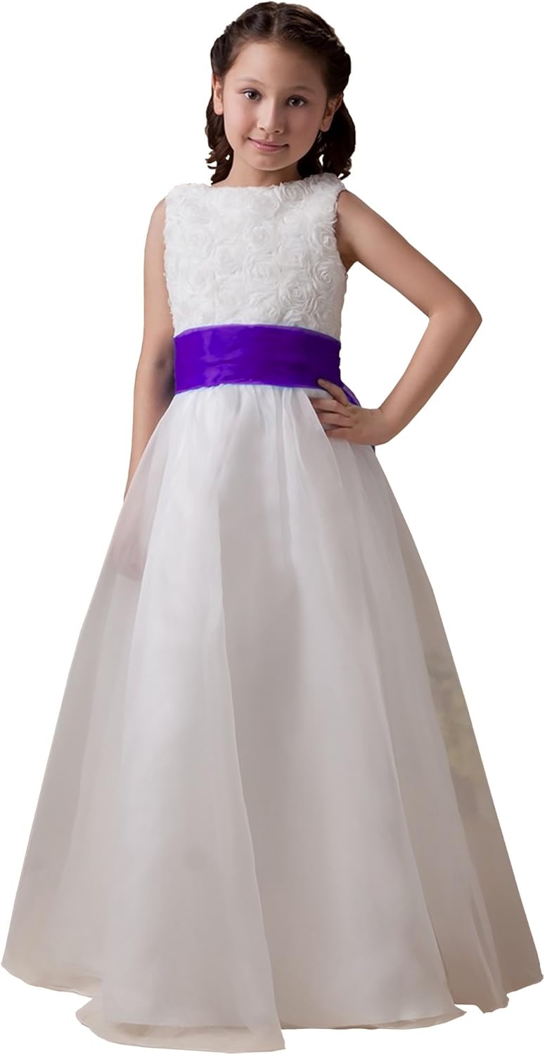 Angel Star Isabelle Ivory White Flower Girl Dress With Choice Of Wedding Dress With Purple Sash