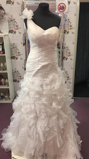 Monica S Bridal Calla Blanche 17242 Style 1172417hi Lace Detailed Wedding Dress With Ruffles On Bottom