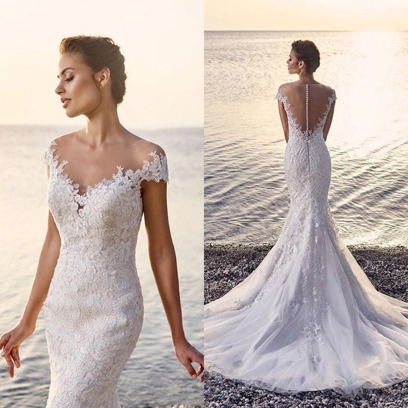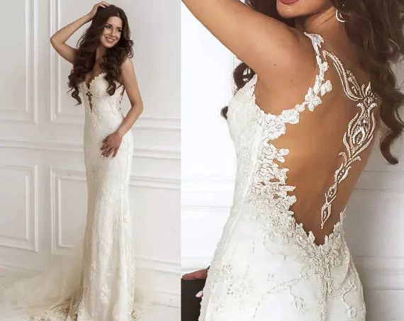See Through Appliques Long Sleeves Open Back Mermaid Wedding Wedding Dress With See Through Back