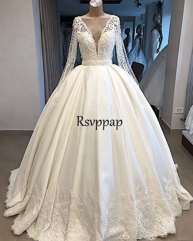 V Neckline Sheer Lace Chiffon Short Sleeves Wedding Gown Malaysia Wedding Dress With Sheer Lace Sleeves