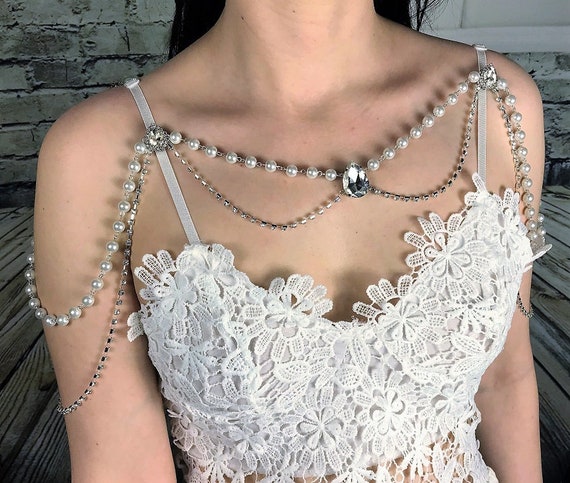 Bridal Dress Shoulder Necklace Rhinestone Lace Shoulder Necklace Wedding Dress With Shoulder Necklace