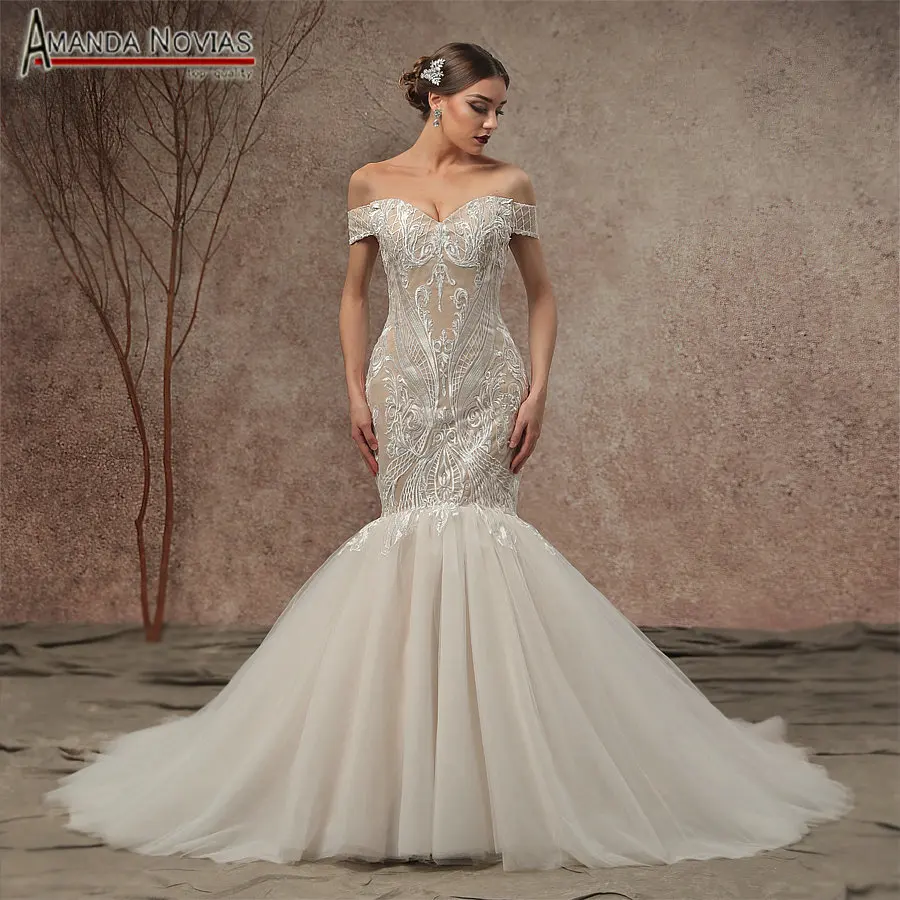 Luxury Ivory Champagne Arabic Wedding Dress Ball Gown Off The Wedding Dress With Shoulder Straps