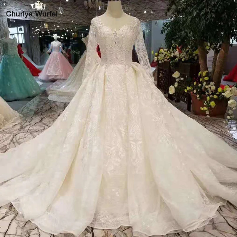 Ball Gown Tulle Applique Off The Shoulder Long Sleeves Sweep Brush Wedding Dress With Tulle Sleeves